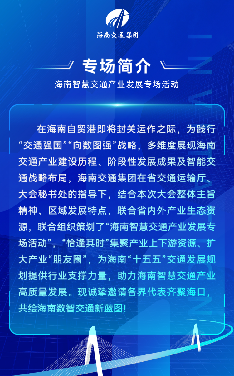 智慧交通,海南機遇,聚焦前沿,共謀發展!海南交通集團誠邀您撥冗出席系列專場活動,與業界精英共話海南智慧交通新未來。席位有限,請速掃碼報名!