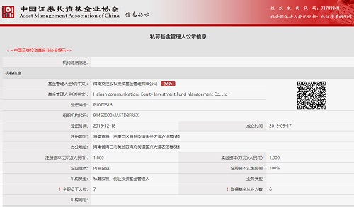 12月19日,海南交控股權投資基金管理有限公司(以下簡稱“海南交控基金公司”)順利通過中國基金業協會審核,成為私募基金管理人(編號:P1070516),這標志著海南交控在投融資領域的金融創新與融合發展邁上了新臺階 [更多]