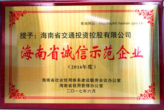 “誠信于行 海南榜樣”——海南省首屆誠信示范企業評選紅榜出爐,我司金榜題名。7月4日,評選活動總結大會暨授牌儀式在海南迎賓館舉行。省社會信用體系建設聯席會議40多個成員單位代表,包括我司在內的27家誠信企業代表,以及省內部分企業代表150余人參加會議,省政府副秘書長林濤出席會議并為誠信企業授牌。 [更多]