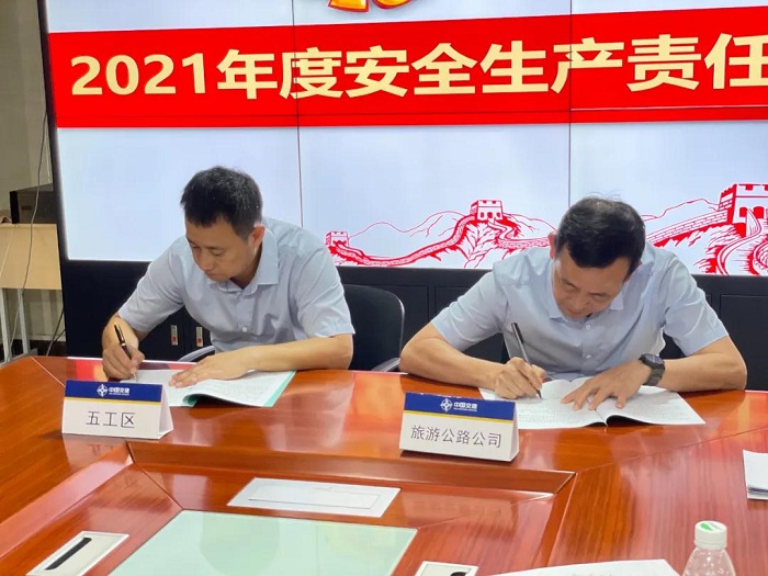 旅游公路公司分別與駐地辦、工區項目、中心試驗室簽訂2021年度安全生產目標責任書。
