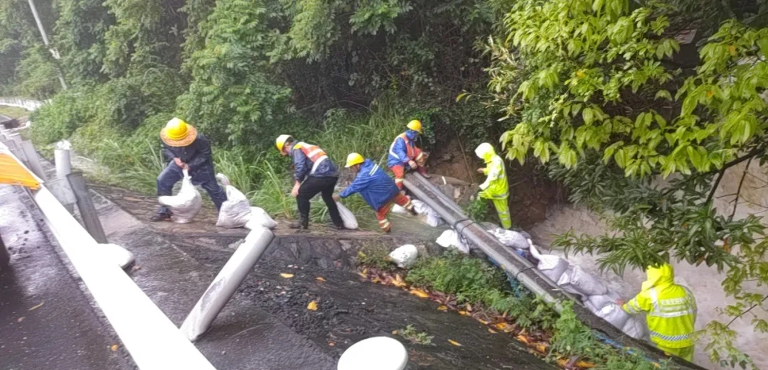 三亞管理站立即派出作業車3輛,出動了養護人員6人,臨時雇工6人,分組運送沙袋并加緊制作備用沙袋,使用了200個沙袋回填加固了此處的涵洞錐坡,防止水毀情況擴大,經過2個小時不停歇的作業,目前水毀點已加固完成。下一步,三亞管理站將派人加強值班值守,密切關注該處水毀點,并準備好各項應急物資,確保妥善處理突發情況。.jpg)