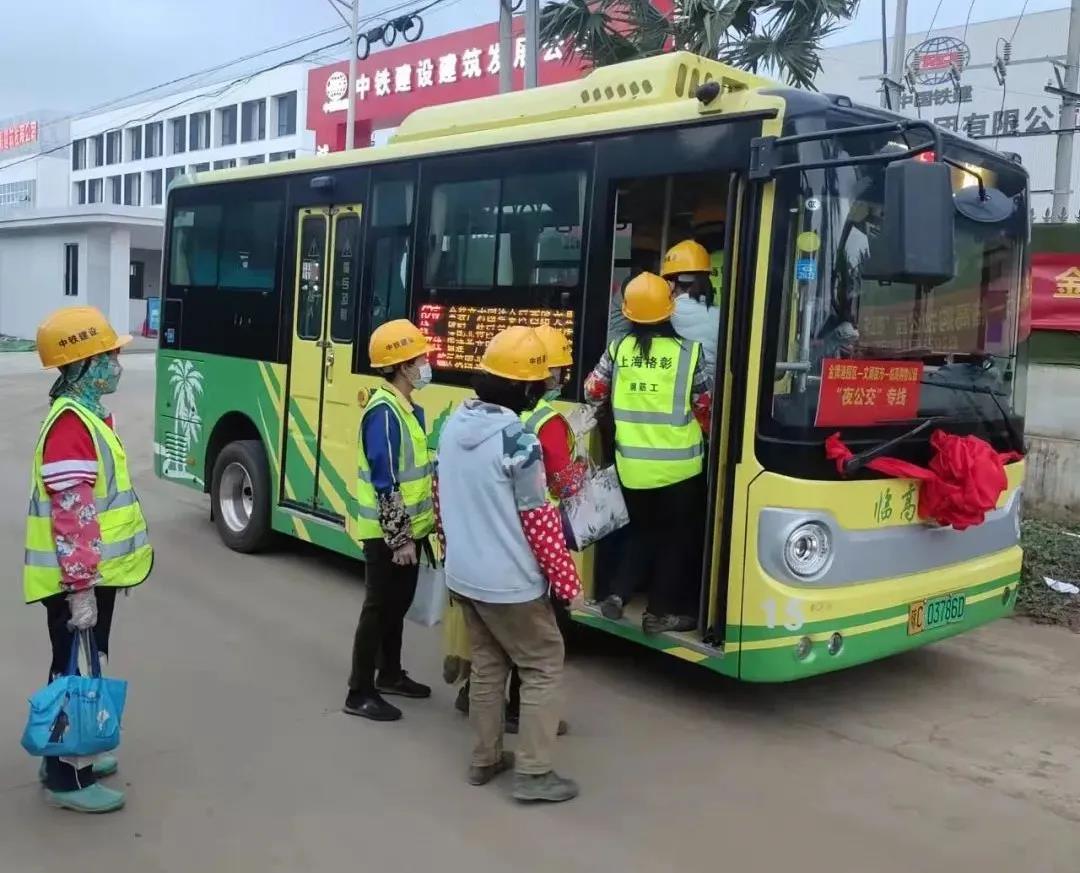 從金牌港裝配式建筑產業園區到縣城購物消費更方便了!2021年12月31日下午6點,臨高縣公共交通公司第62路公交車進金牌港產業園區開通儀式在中鐵建設集團有限公司舉行。