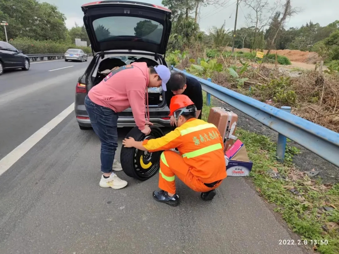 “我們已經給您換好輪胎,請您盡快駛離。”