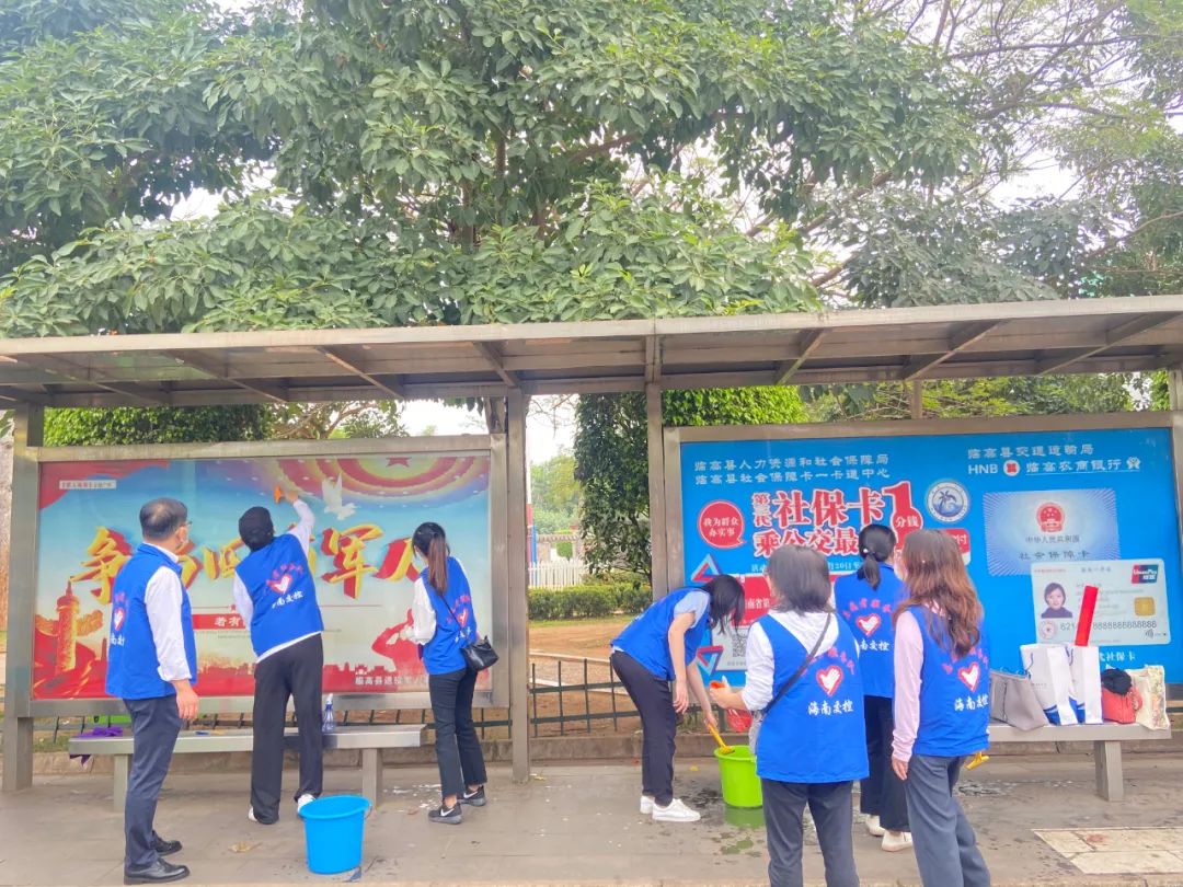 隨后,陳泰鋒帶領大家開展“擦亮城市文明窗口”學雷鋒志愿服務活動。現場志愿者們分工明確,配合默契,對公交站牌和候車亭進行清潔維護,有人拿抹布擦拭玻璃和金屬邊框塵垢,有人拿鏟子耐心地清除站臺小廣告,有人彎腰擦洗候車區的長條凳,充分展現了海南交控黨員、團員的良好形象。