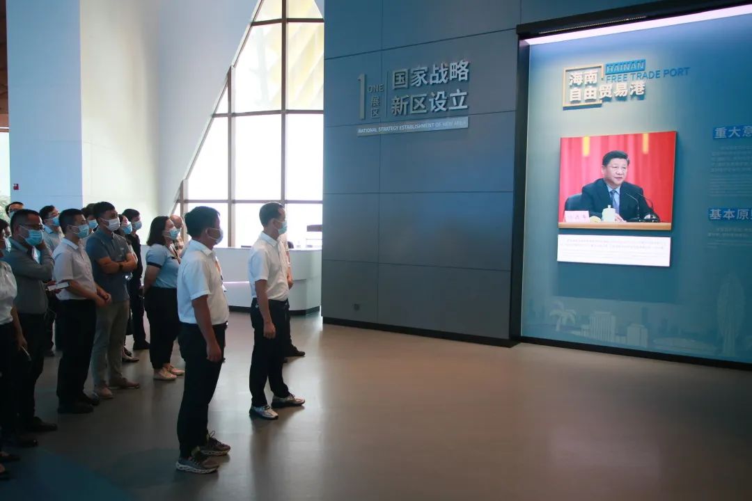 在海口江東新區展示中心講解員的引導和解說下,全體人員依次參觀了“國家戰略新區設立”“高起點規劃高標準建設”“綠水青山就是金山銀山”“更高層次改革開放新格局”等展區,并通過感應移屏技術和3D智慧沙盤,全方位、多角度地了解海口江東新區目前建設情況以及未來規劃。