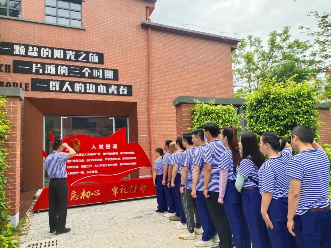 黨員們跟隨解說員參觀海鹽文化館,傾聽不同時期的鹽場人(鹽三代)現場訪談,感悟鶯歌海鹽場建設者們將30平方公里荒涼沼澤地,建設成為中國南方最大鹽田的艱苦歷程,及不屈不撓、不畏艱辛,燒干海水變銀山的無私奉獻精神。隨后,大家開啟3.5公里的拉練旅程,沿著鹽工足跡,體會鹽工艱辛。此外,還進行收鹽比賽,大家戴上鹽工帽,當一回地地道道的收鹽工,領會鶯歌海鹽場工人創業守業、灑下熱血青春的大無畏精神。