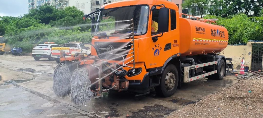 經過研究小組多次研討、構思原理、設計草圖、反復測算,決定采用現有的護欄清洗水車作為改裝對象,在水車的前置護欄清洗轉盤上,加裝一組特制的金屬水管桿件支架,其中一端連接護欄清洗水車前置的出水端口,另一端裝有多個高壓噴水頭,通過加壓后的水流沖擊,將防眩板上的污染物沖洗干凈。
