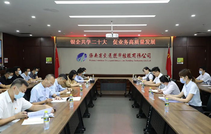 為進一步拓寬新時代黨建共建工作思路,形成“優勢互補、資源共享、文明共建、共同發展”的黨建工作新格局,10月18日上午,海南交控第二黨支部聯合海口農商銀行營業部黨支部聯合開展“銀企共學二十大,促業務高質量發展”黨建共建活動,雙方黨支部黨員及積極分子共26人參加。