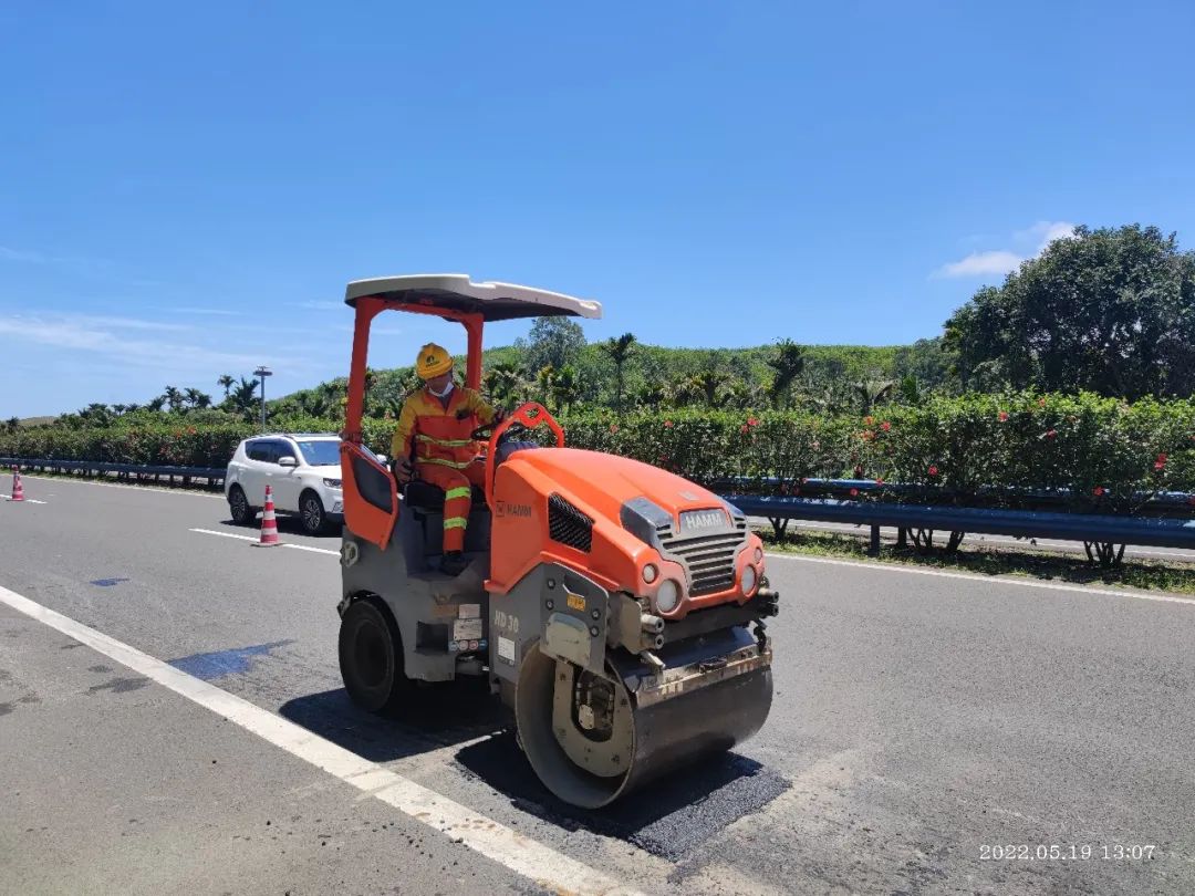 隨著高速公路通車年限的增長以及交通量的不斷增加,瀝青路面各種病害也接踵而至,鄭杰在熱浪滾滾的公路上化身為“美容師”。在修補瀝青路面坑槽的前一天,他已和定安管理站提前對接瀝青混合料生產相關事宜,以便當天清早迎接裝有瀝青混合料的保溫車。伴隨機械設備的轟鳴聲,鄭杰和站里的同事熱火朝天地施工。鄭杰采用“圓洞方補、斜洞正補”的方式對坑槽進行切割、鑿除,并清理干凈碎渣,用乳化瀝青灑布粘層。在等待破乳之后,他將瀝青混合料進行均勻攤鋪,仔細確認攤鋪的平整度。鄭杰肯下功夫勤于練習,成為站里的機械操作能手,在駕駛壓路機壓實路面這樣的熟練環節絲毫不分神。在等待瀝青混合料溫度下降這段時間里,他滿臉都是汗水,不時模糊雙眼,“我們經常這樣免費蒸桑拿的”,他打趣地說道。