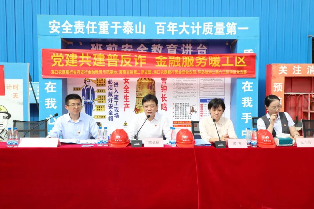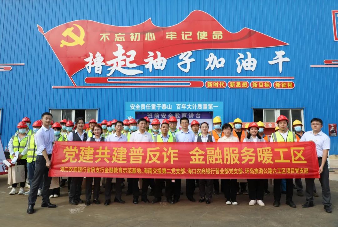 “黨建共建普反詐,金融服務暖工區。”11月24日上午,海南交投第二黨支部與海口農商銀行營業部黨支部前往臨高蘭堂村的文瀾江拌和站工地,與環島旅游公路六工區項目黨支部聯合開展主題黨日志愿服務活動。海南交投黨委委員、副總經理陳長征、梁翠出席活動。