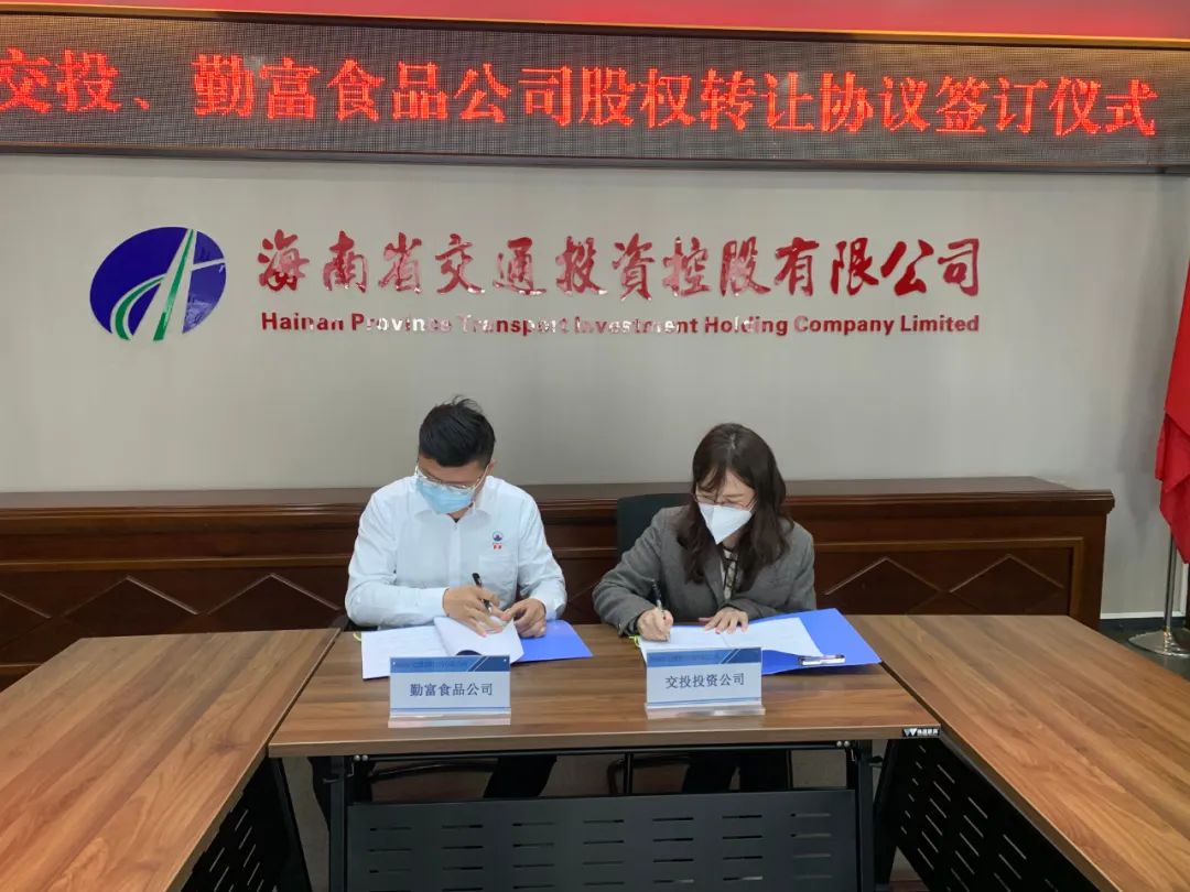 12月19日,在海南交投黨委黨員、副總經理梁翠的見證下,海南交控投資有限公司(下稱“投資公司”)與海南勤富食品有限公司(下稱“海南勤富”)舉行股權轉讓簽約儀式,這標志著海南交投又一家財政股權投資企業成功退出。投資公司執行董事孫瓊雅主持,投資公司副總經理胡珊珊、財務總監王珊,海南勤富總經理周云峰等出席簽約儀式。