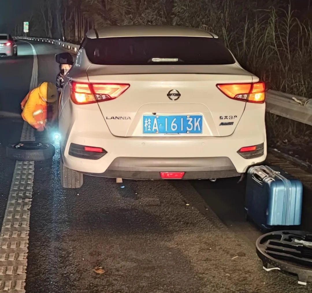 1月9日夜間,楊女士獨自一人駕車行駛在高速公路上,行駛過程中車輛突然爆胎,存在嚴重的安全隱患。楊女士在應急車道上無助地撥打電話向朋友求助,由于已是深夜,電話均未接通。獨自一人的楊女士感到十分無助,焦急萬分。此時,公司瓊海管理站的崔傳福、蘇慶福在前往清障的路上遇到了在應急車道焦急等待的楊女士,他們立馬將車輛停靠,放置安全警示標志做好安全防護措施。在了解情況后,他們二話不說立即為楊女士更換了車備胎。更換完備胎之后發現備胎氣壓不足,存在行駛隱患,兩名同志不顧寒風凜冽,又帶領楊女士前往修理廠處理故障,保證了行車安全。