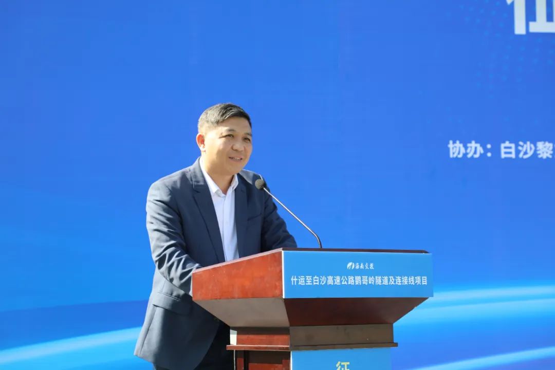 省交通運輸廳總工程師黃澎、省資規廳總規劃師王俊剛,白沙縣委書記鄧偉強、縣長黃聰,五指山市常委、常務副市長賈鵬,瓊中縣副縣長崔大偉,以及海南交投黨委副書記、總經理陳泰鋒,黨委委員、副總經理陳敬出席。項目所在市縣相關領導及各部門負責人,海南交投辦公室、工程部、項目公司負責人及各參建單位與新聞媒體代表參加。