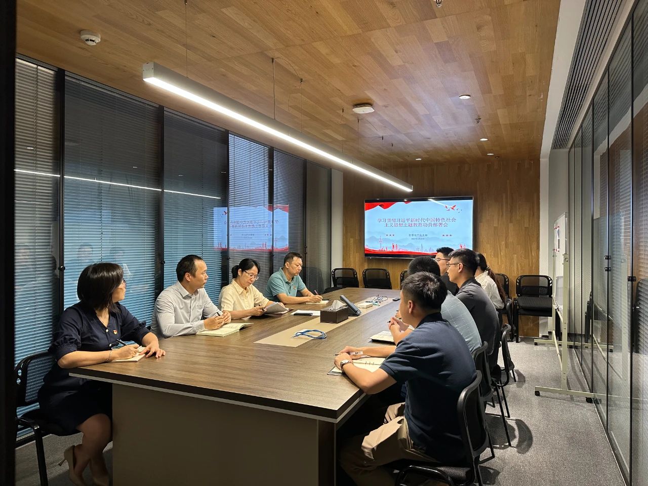 4月25日,海南交投智慧交產黨支部召開學習貫徹習近平新時代中國特色社會主義思想主題教育動員部署會,聚焦目標要求,確保走深走實,支部全體黨員參加會議。