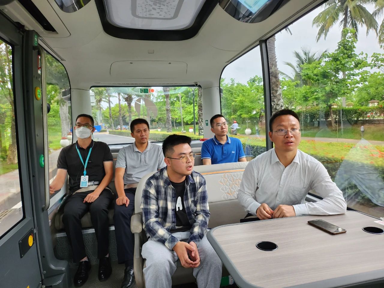 隨后,陳敬一行到智慧交產公司投資建設的東嶼島車聯網項目參觀調研,聽取車聯網項目的工作匯報及操作流程,并乘坐體驗了無人駕駛車輛。