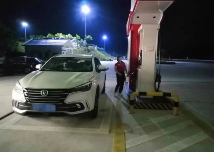 29日深夜,該站已過營業時間,加油機已斷電關機,忙碌了一整天的員工們都已安然入睡。嗶嗶嗶……突然有顧客駕車鳴笛,進站尋求幫助,聲稱從三亞途經萬洋高速一直未能加上油,車上還有高齡老人和嬰兒,請務必幫忙加油啊。睡意朦朧的站長李尋歡了解情況后,立即清醒,迅速組織站內員工重新開機檢驗,抽出油管,及時為顧客的車輛注滿能源,并開門提供食物、飲料等便利店服務,緩解了顧客的燃眉之急。