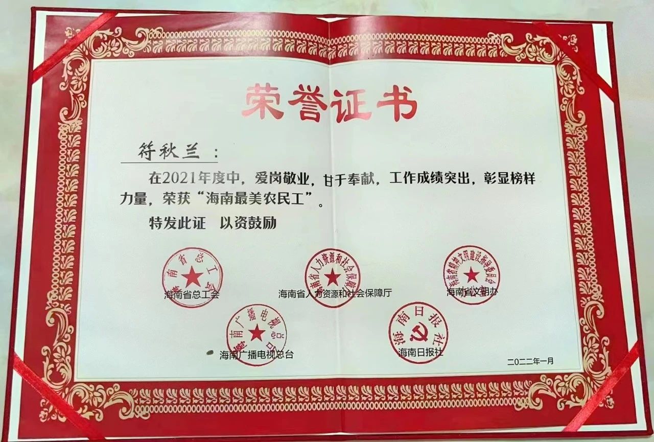 符秋蘭,中共黨員,是海南交投旗下臨高公交公司的運營主管。她肩負著公交線路開發、線路運營調度管理、公交站牌維護等重要工作,被大家親切稱為公交順利運行背后的“指揮官”。2022年,符秋蘭被海南省總工會、省人社廳、省文明辦等多部門授予“海南最美農民工”榮譽稱號。