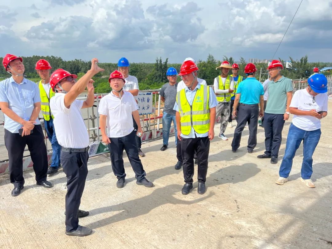 7月17日,省交通工程質監局總工程師陽振中、黨委安全委員韓旺一行到環島旅游公路項目現場檢查指導臺風“泰利”防御工作。
