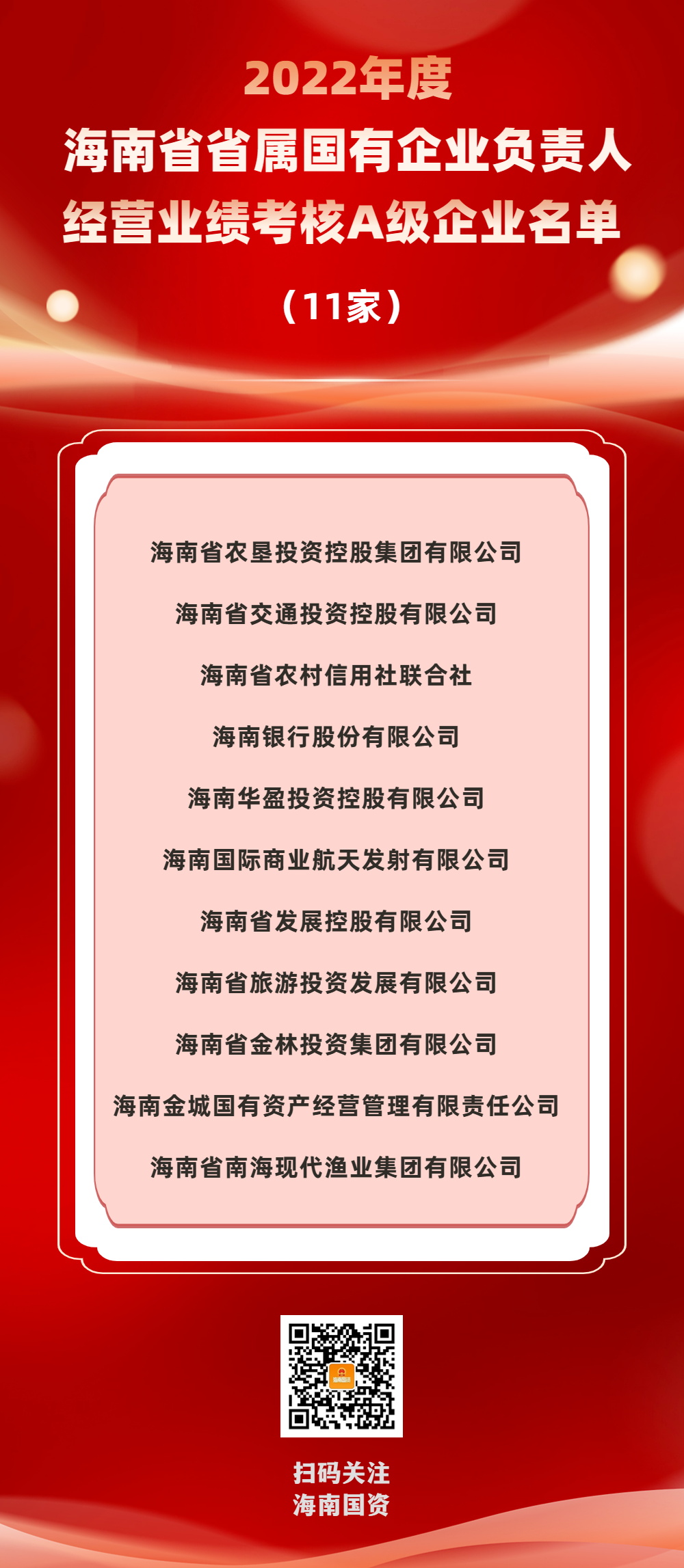 7月20日,省國資委公布2022年度海南省屬國有企業負責人經營業績考核結果A級企業名單,海南省交通投資控股有限公司(以下簡稱“海南交投”或“公司”)榜上有名,是僅有的11家獲評A級省屬國企之一。
