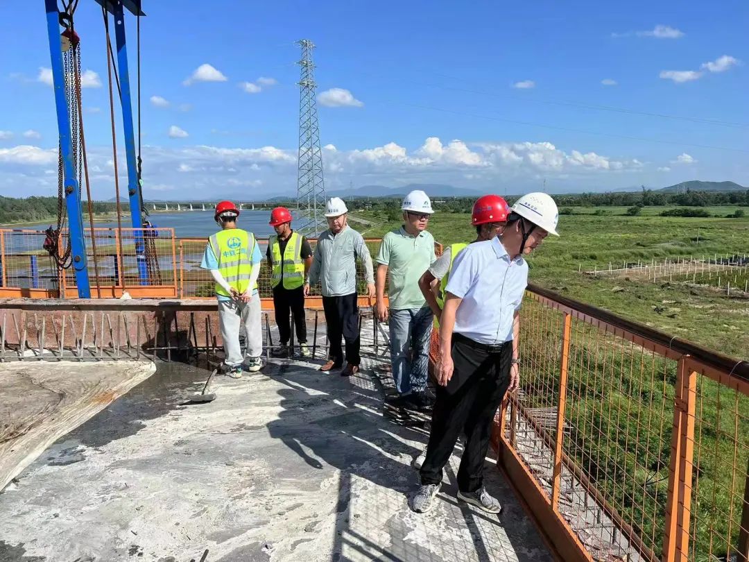 陳敬一行先后對昌化江大橋、珠碧江大橋和沿線交通設施進行了詳細的排查,聽取了現場負責人關于施工生產情況的匯報。陳敬對昌化江大橋全橋順利合龍和珠碧江大橋首跨合龍表示祝賀,并提出要求:一是要提高思想站位,高度重視安全穩定工作,舉一反三,堅決消除隱患;二是夯實安全管理責任,抓實抓細交通安全、掛籃施工、支架作業、特種設備作業等重大安全風險隱患排查,預防安全事故發生;三是強化汛期安全防護工作,完善交通安全設施,特別是加強昌化江大橋、珠碧江大橋等重點區域汛期安全防護措施;四是全面加強安全管理工作,在堅決確保安全質量的前提下穩步推進施工生產,有序完成剩余工程任務。