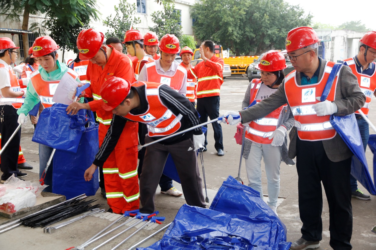 黨員干部職工準備垃圾袋、鉗子、手套等工具