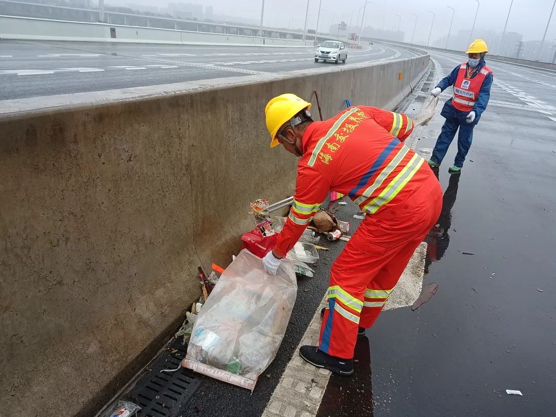 早高峰期間,過海車流量大、部分時段行車緩慢,排隊車輛隊伍駛過,路面便留下了不少餐后垃圾、白色垃圾和拋灑物。“別小看這幾公里,我們半天就能裝滿三四十袋這樣的米袋子。”身穿橘紅色的工作服的養護人員正在一旁抓緊通行前的空擋,緊急將路面清掃干凈,避免影響道路環境,造成安全隱患。負責保潔任務的永興管理站站長介紹,早上8點車就排上G15高速公路了,一些司機在等待通行的時候,會將垃圾隨手拋撒在行車道上,通行后,比較輕的垃圾會隨著氣流到處飛,清理難度相對較大。據了解,為保障春運的順利開展,海南交投養護公司根據工作實際,不斷增派養護保潔人員,每天上午、下午各安排一臺清掃車和一組作業人員,在路面滾動開展不間斷地巡查,養護人員穿梭在車流間隙中,迅速將路面垃圾清掃并集中到路肩,再及時進行裝袋運送,有效杜絕了高速公路變成為“流動的垃圾場”。