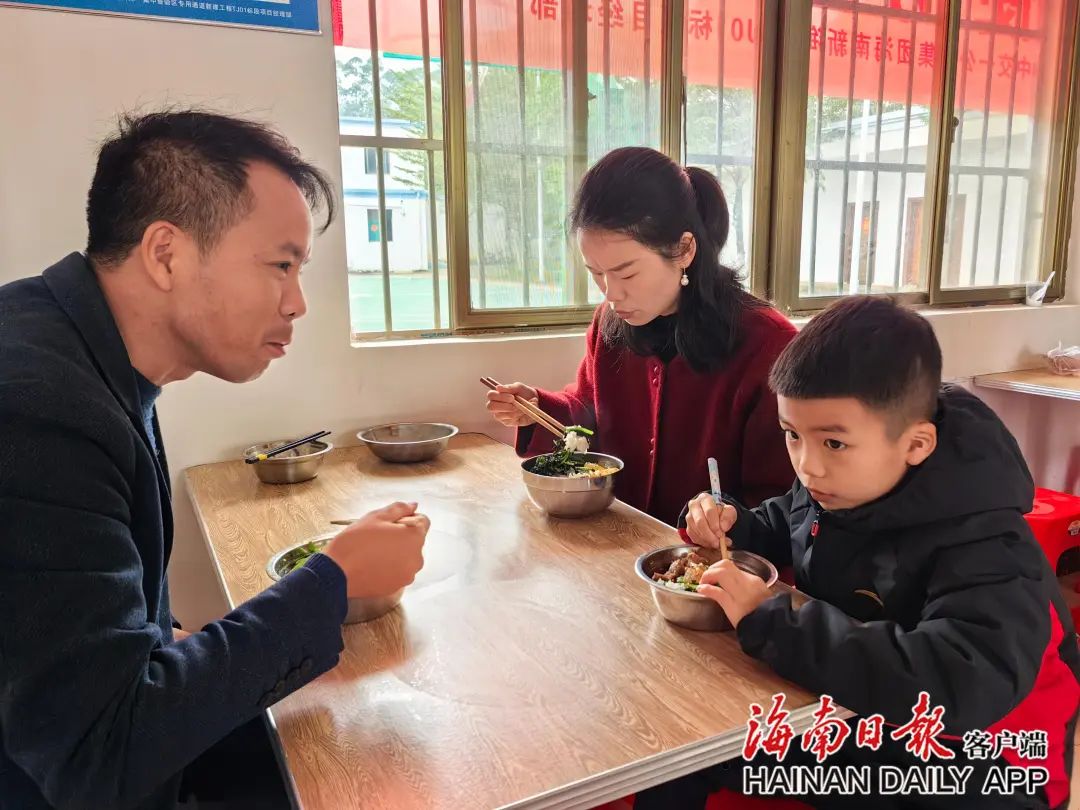 中交一公局集團海口新海港片區“二線口岸”項目TJ01標項目安全總監張少北和春節假期陪他在工地過年的妻子和孩子。