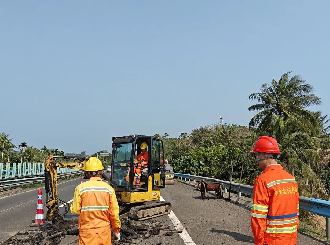 在G98海南環島高速公路上,瓊海管理站正在按計劃,有序開展“博鰲”年會保障工作。在巡查中,他們發現左幅K101+180處路面有沉陷病狀,存在嚴重的行車安全隱患。技術人員立即進行調查分析,發現是由于該處橋臺搭板破損導致,挖開破損處進一步排查,在確認未被掏空后,瓊海管理站采取緊急填補方式進行處理,及時消除了該安全隱患。