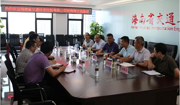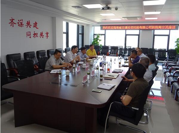 2017年4月17日,海南省交通投資控股有限公司董事長、黨委書記劉忠信帶領我司副總經理陳長征以及綜合部、投資部、工程部等有關部門負責人赴省交通工程建設局進行交流座談,省交通工程建設局局長呂曉宇、副局長李邦武、張建軍以及該局辦公室、工程科、計財科等主要負責人參加了座談會。 雙方就如何加強合作、拓展自身業務、探討成立合資公司,共同攜手解決雙方現實工作中遇到的困難和問題等方面進行了深入的交流。