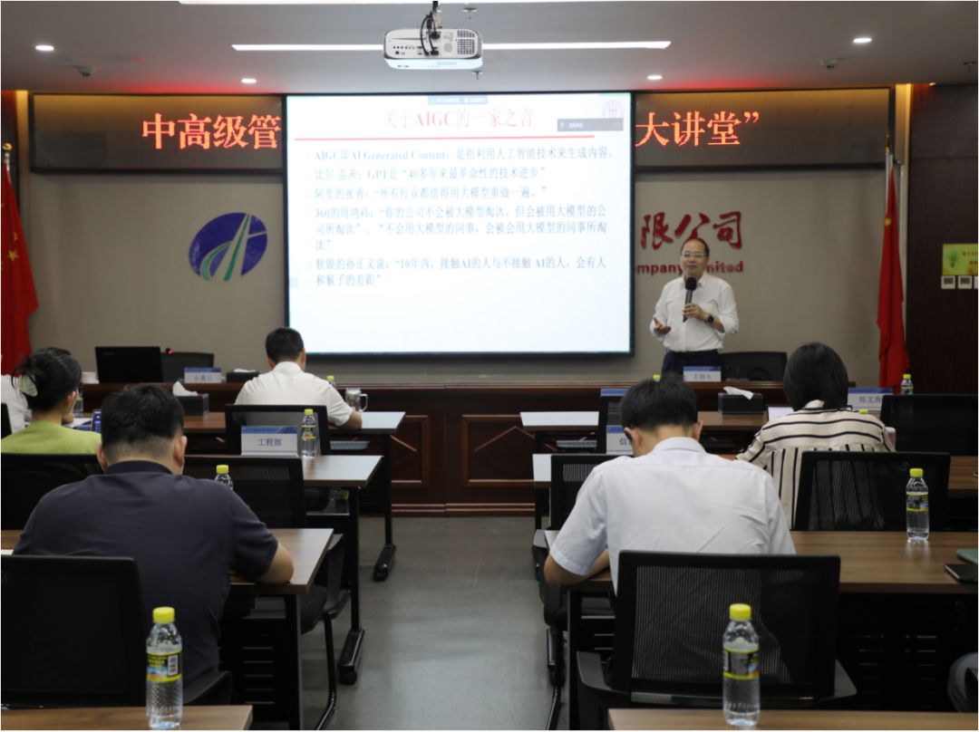 左美云教授帶領大家學習了習近平總書記在中央經濟工作會議、習近平總書記參加今年兩會江蘇代表團審議等重要會議上就新質生產力發表的重要講話,并從“新質生產力涵義”“傳統行業發展新質生產力”“新質生產力與數智化轉型”等方面作了主題鮮明、內容豐富的授課。報告既有宏觀視野,又有微觀視角,既有理論高度,又有現實思考,為我們更好地把握發展大勢、搶抓發展機遇、推動公司高質量發展劃出了重點、指明了方向。