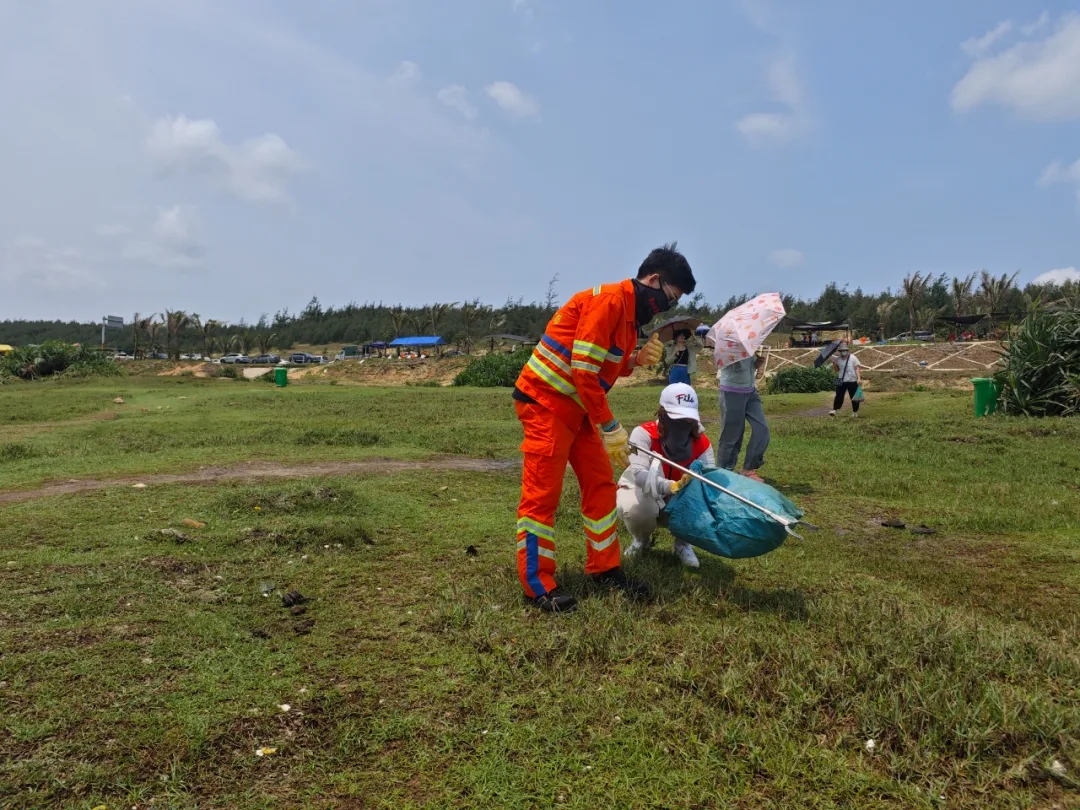 隨后,志愿者們卷起袖子、沉下身子,充分發揚不怕苦、不怕累的精神,大家分工協作,你撿垃圾我裝袋,彎腰撿拾不怕臟,拾撿沿海、草坪及周邊的各種垃圾,幫助沿海沙灘呈現煥然一新的景象。