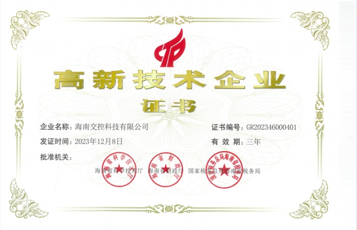近日,海南交投旗下海南交控科技有限公司(以下簡稱“科技公司”)通過了由海南省科技廳、海南省財政廳、國家稅務總局海南省稅務局的高新技術企業認定,并榮獲“國家高新技術企業”稱號。