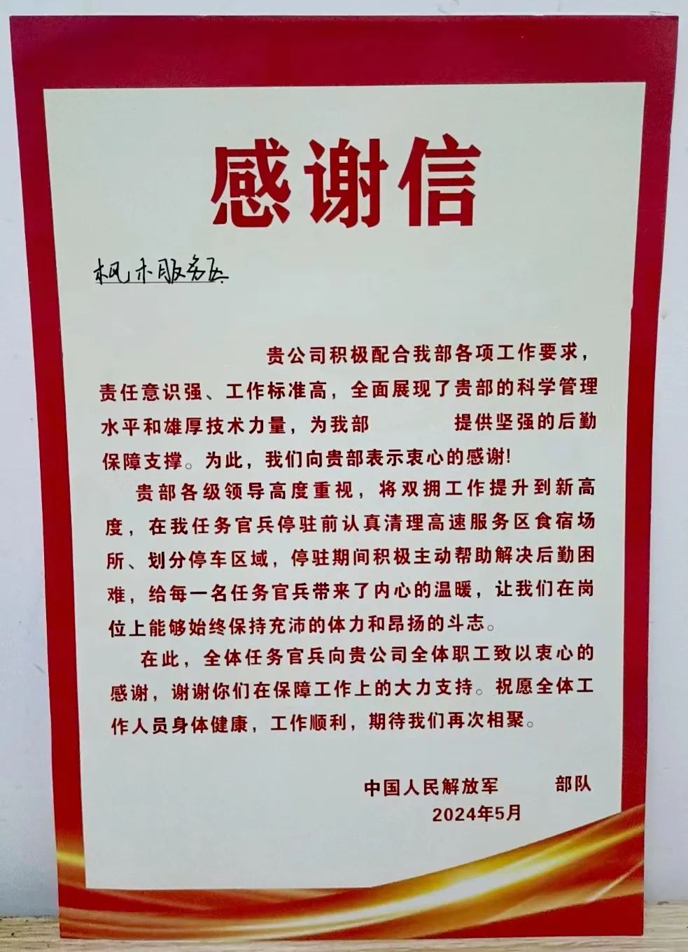 接下來,交商集團將以持續推動軍民融合發展為己任,進一步深化與軍供站的合作,共同探索更多元化的服務模式,為部隊提供更加優質的后勤服務。同時,通過保障軍供、服務軍人,不斷提高管理服務水平和應急保障能力,為提升我省高速公路服務區的整體品質貢獻力量。