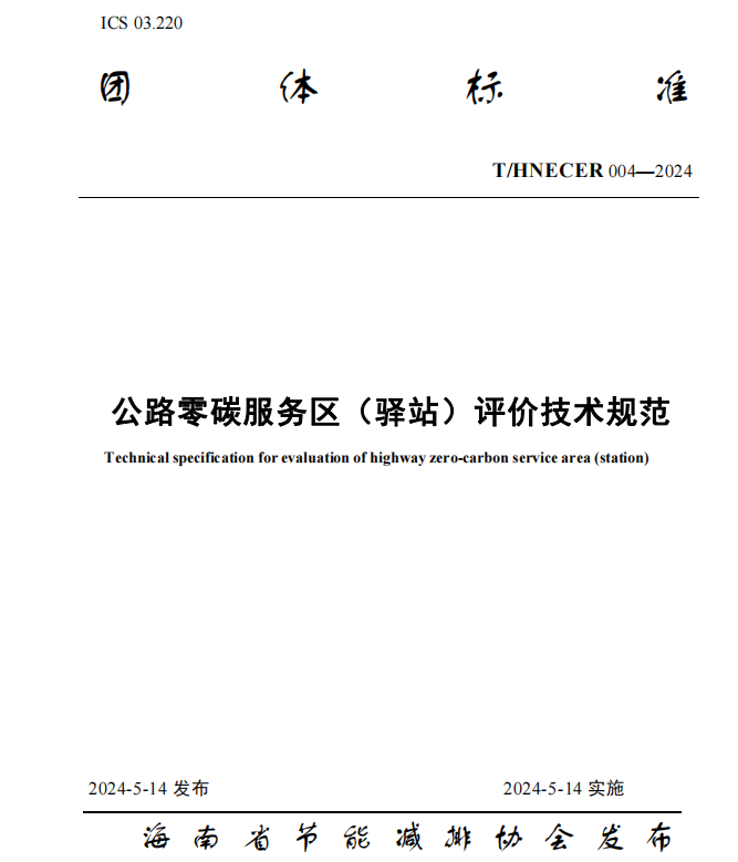 由海南省節能減排協會申報立項及編制的《公路零碳服務區(驛站)評價技術規范》,經國家標準委審核審批通過,于5月14日在全國團體標準平臺正式對外發布。交商集團作為編制單位,公司副總經理宋穎、服務區運營管理中心主任嚴斯傑作為主要起草人,參與了該規范標準的制定。這是繼馮家灣服務區榮獲“海南省零碳服務區創建示范單位”后,交商集團黨支部深化“碳路先鋒”黨建品牌建設,實踐黨建促發展的又一成果,也是公司踐行綠色發展理念,爭當海南交通領域綠色發展領頭羊的重要舉措。