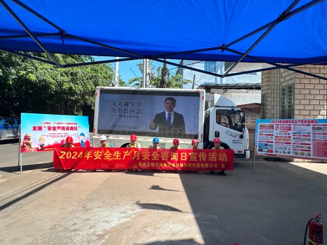通過此次安全宣傳咨詢日活動,洋浦疏港高速公路各參建單位充分發揮宣傳教育作用,積極推動安全宣傳工作進企業、進農村、進社區、進學校、進家庭,強化項目參建員工及社會公眾對安全生產月的理解和認知,共同營造了“人人講安全、個個會應急——暢通生命通道”的和諧發展環境。