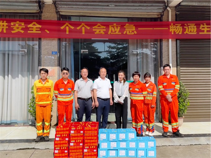 慰問組向養護工人送去了王老吉、水央橘等防暑降溫用品,并深入關切一線職工的工作生活情況,對大家的辛苦付出給予了充分肯定。李中廣叮囑大家,在高溫天氣作業要合理安排戶外作業時間,堅決避免因高溫超時、超負荷工作而引發安全事故的發生。同時要密切關注天氣變化,加大道路巡查力度,做好應急準備工作。