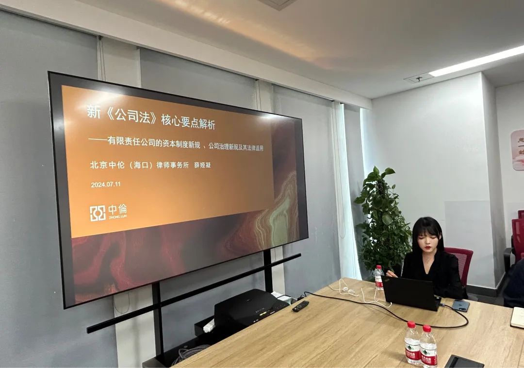 為進一步提升公司外派產權代表責任人履職能力,增強履職風險防范意識,7月12日下午,海南交投交商集團邀請北京中倫(海口)律師事務所薛婭凝律師針對公司外派產權代表責任人在新《中華人民共和國公司法》背景下履職風險識別和應對等開展專題學習培訓。交商集團全體員工、下屬單位相關工作人員參加培訓。