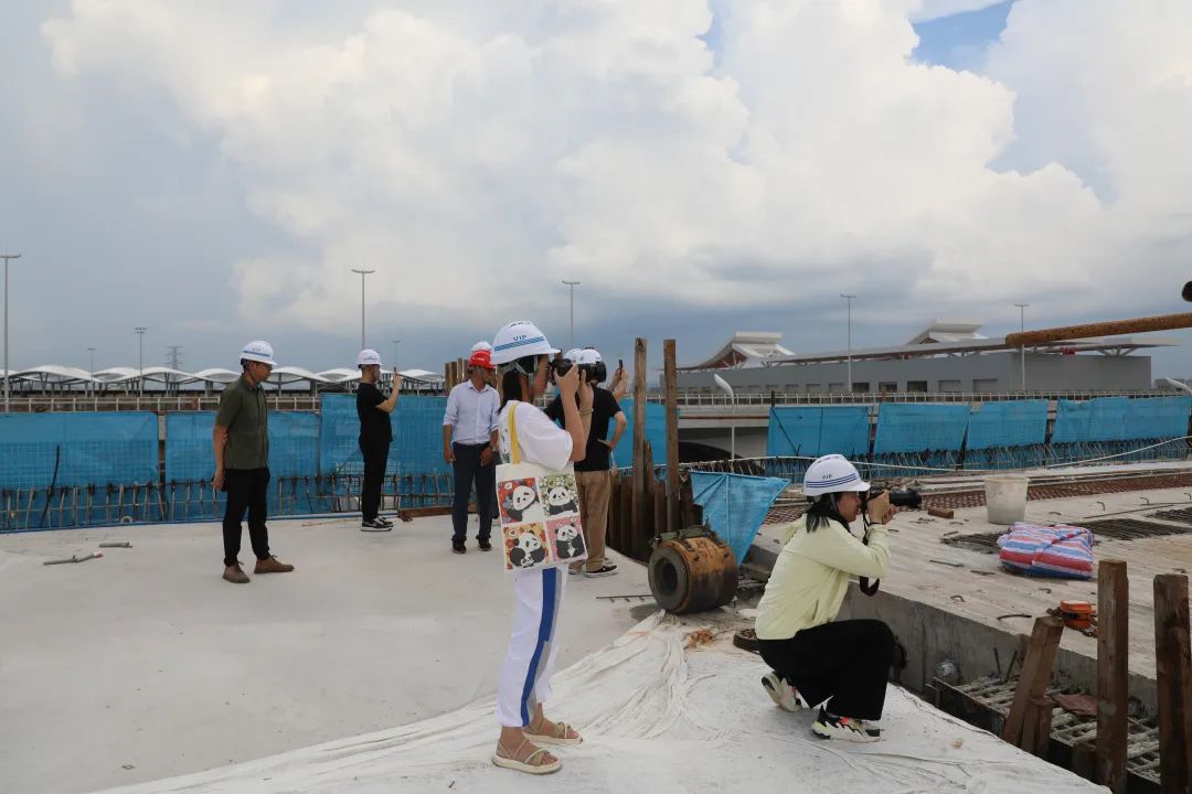 學以致用,知行并進。當日培訓結束后,學員們由工作人員引導,深入海口“二線口岸”專用通道項目建設現場進行一線采風,及時運用當天培訓所學知識,進行了項目現場拍攝和新聞采編的具體實踐。