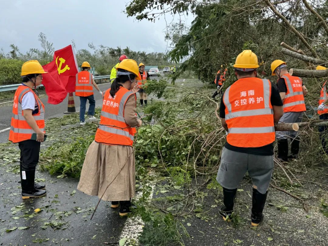 9月7日,臺風“摩羯”過境后,海南交投黨委第一時間組織由42人組成的黨員突擊隊,由黨委領導班子成員帶隊,分赴東線高速、中線高速、“二線口岸”專用通道等重點項目現場開展災后支援工作,將鮮紅的黨旗插在了搶險救災一線。