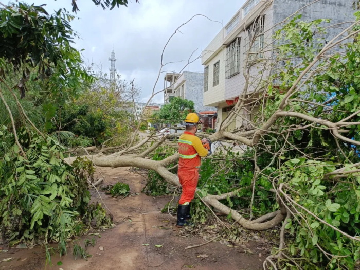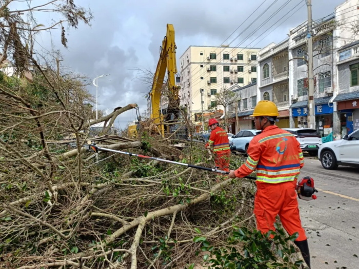受超強臺風“摩羯”重創,文昌市東郊鎮市區主干道綠化倒伏嚴重影響市民出行。9月10日,海南交投養護公司主動聯系到當地政府,在得知支援請求后,東郊椰林管理站迅速組成一支由4名職工組成的志愿隊,前往東郊鎮受災最嚴重的地區進行支援。