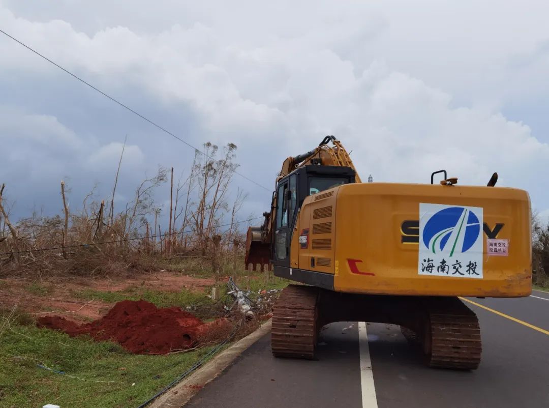 為避免設備停放無序影響交通,李崇立即聯系文昌市政府辦、應急管理局等部門,詳細了解文昌各鄉鎮的困難和需求,并溝通研究出設備的初步調配方案。10日凌晨3時,隨著最終調配方案的確定,李崇迅速指揮36臺挖機,分批、有序趕赴各鄉鎮救災指定點位。