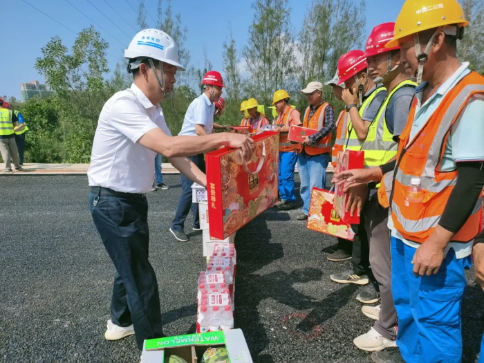 9月16日,海南環島旅游公路項目黨建聯盟特別組織開展了主題為“情系一線送溫暖,濃情中秋暖人心”的節日慰問活動。海南交投環島旅游公路公司董事長、總經理吳卓科,同環島旅游公路監理單位代表及項目主要管理人員一行深入環島旅游公路環新英灣支線項目建設一線,向節日期間仍堅守崗位、辛勤付出的建設者們致以誠摯的節日問候和崇高的敬意。