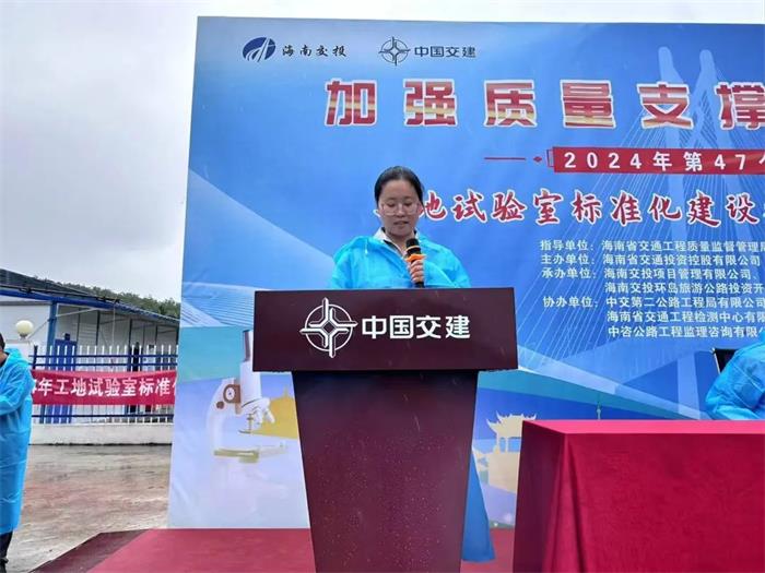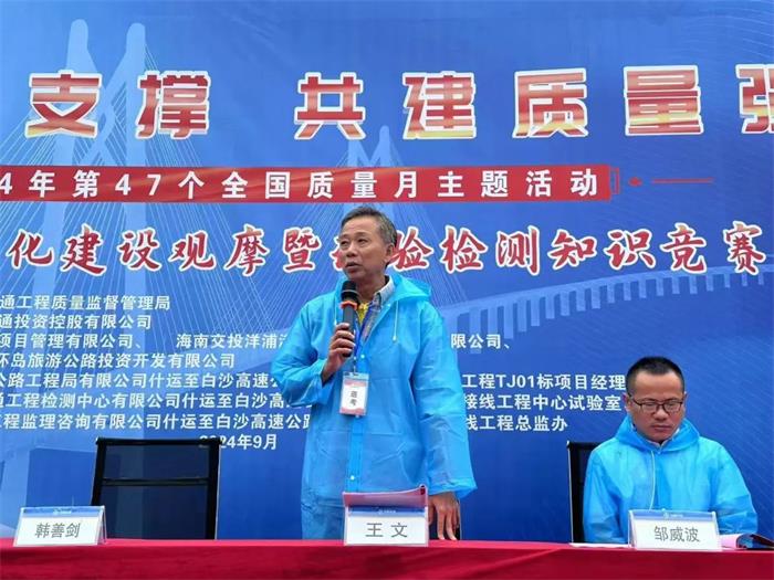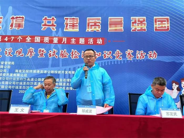 隨后,海南交投項目管理公司副總經理鄒威波宣貫了2024年“質量月”工地試驗室標準化建設觀摩暨試驗檢測知識競賽活動方案,裁判員代表和選手代表相繼作表態發言。