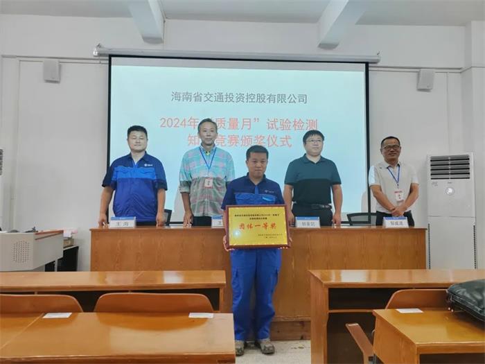 下午,試驗檢測知識競賽正式開始,知識競賽分為理論考試和現場答題兩個環節,參賽選手你追我趕、爭先恐后,現場氣氛濃厚。經過多輪激烈的角逐,洋浦疏港高速公路SG03標工地試驗室榮獲團體一等獎,環島旅游公路工程第十一工區工地試驗室、“二線口岸”專用通道項目涉鐵標工地試驗室榮獲團體二等獎,鸚哥嶺隧道項目TJ01工地試驗室、鸚哥嶺隧道項目TJ03工地試驗室、環島旅游公路工程第四中心試驗室獲得團體三等獎;鸚哥嶺隧道項目TJ02標工地試驗室李明浩榮獲個人一等獎,洋浦疏港高速公路中心試驗室田逢雨、大茅隧道總監辦工地試驗室沈勇榮獲個人二等獎,洋浦疏港高速公路SG03標工地試驗室劉麗強、鸚哥嶺隧道項目TJ03工地試驗室余創、洋浦疏港高速公路中心試驗室張蕓榮獲個人三等獎。活動在頒獎儀式中順利落下帷幕。