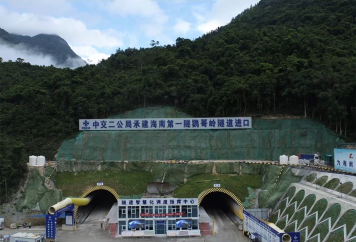 鸚哥嶺隧道全長約8.271公里,設計為分離式雙向四車道,是海南省在建公路項目第一長隧,也是什運至白沙高速公路的關鍵控制性工程,自南向北穿越海南熱帶雨林國家公園,穿越兩處斷層破碎帶,地質條件復雜多變,施工難度極大。