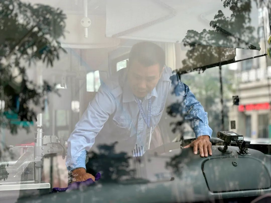 六點的晨曦微露,立春雖至,寒冷卻依舊緊緊相隨,公交停車場內已然是一派繁忙有序的景象。31路駕駛員方燕子正一絲不茍地進行著車輛的日常維護工作,以他一貫的嚴謹態度,開啟了全新一天的工作旅程。這一年的除夕,他依舊在路上,與公交車為伴。