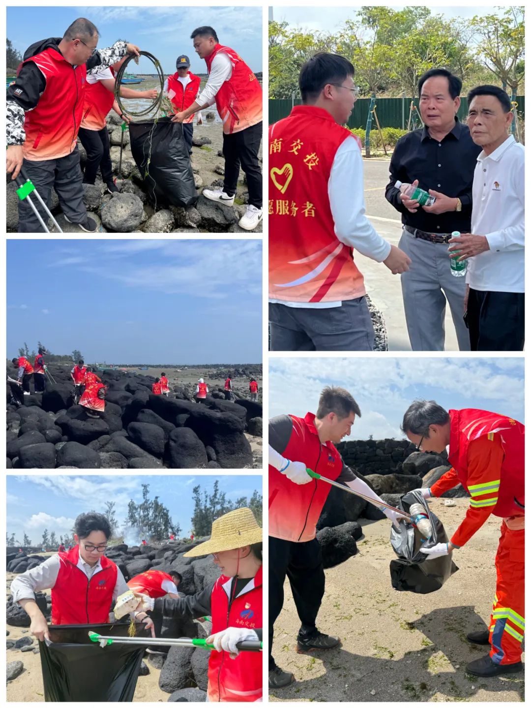 銀灘滌穢織生態經緯,驛站傳情架黨群心橋。在植樹活動后,大家立即兵分兩路,投身環保行動。第一小分隊奔赴火山海岸驛站旁的沙灘,化身守護海岸的“衛士”。黨員們手持鉗子、垃圾袋,仔細清理塑料垃圾、漁網碎片,不放過任何一處角落,讓海岸線重歸潔凈,為游客營造出更加宜人的生態環境。第二小分隊化身“貼心旅伴”,駐守在驛站,為過往司乘免費提供熱水,備齊修車工具、充電器等物品,積極主動、用心用情地拓展服務項目與功能,充分發揮旅游公路“服務驛站”的作用。