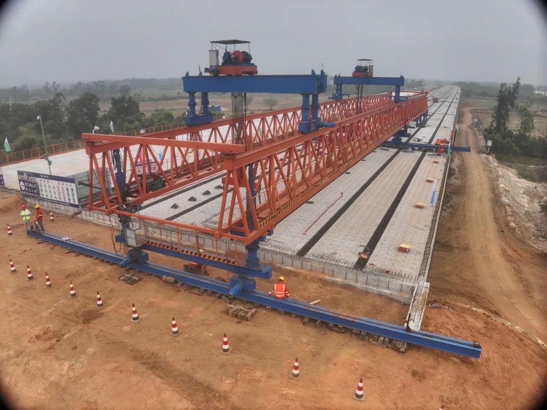 光村水河特大橋作為全線最長橋梁,也是唯一一座特大橋,全長1087.28m。項目采用“智慧梁場”生產工藝,科學組織施工,嚴格保障安全,確保了每天產梁、架梁一循環。僅用時100天完成504片制梁、架梁任務。