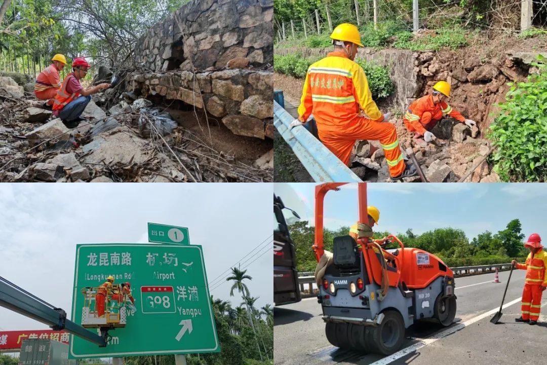 養護公司將汛期隱患排查治理和“五一”假期出行保暢工作有機結合,運用無人機、智能監測等手段,對橋梁、隧道等關鍵部位進行拉網式排查,對事故多發路段交安設施、消防設施進行細致檢查,確保全面掌握路況風險。同時,通過“一次封路,多項作業”,加強對沿線設施的維護保養,如對模糊的標志標牌重新張貼底膜、字體,對毀損邊溝、擋土墻等設施進行漿砌修復,及時疏通排水系統,聯合執法部門推進侵占橋涵空間問題整改等,為節日出行提供堅實的安全保障。