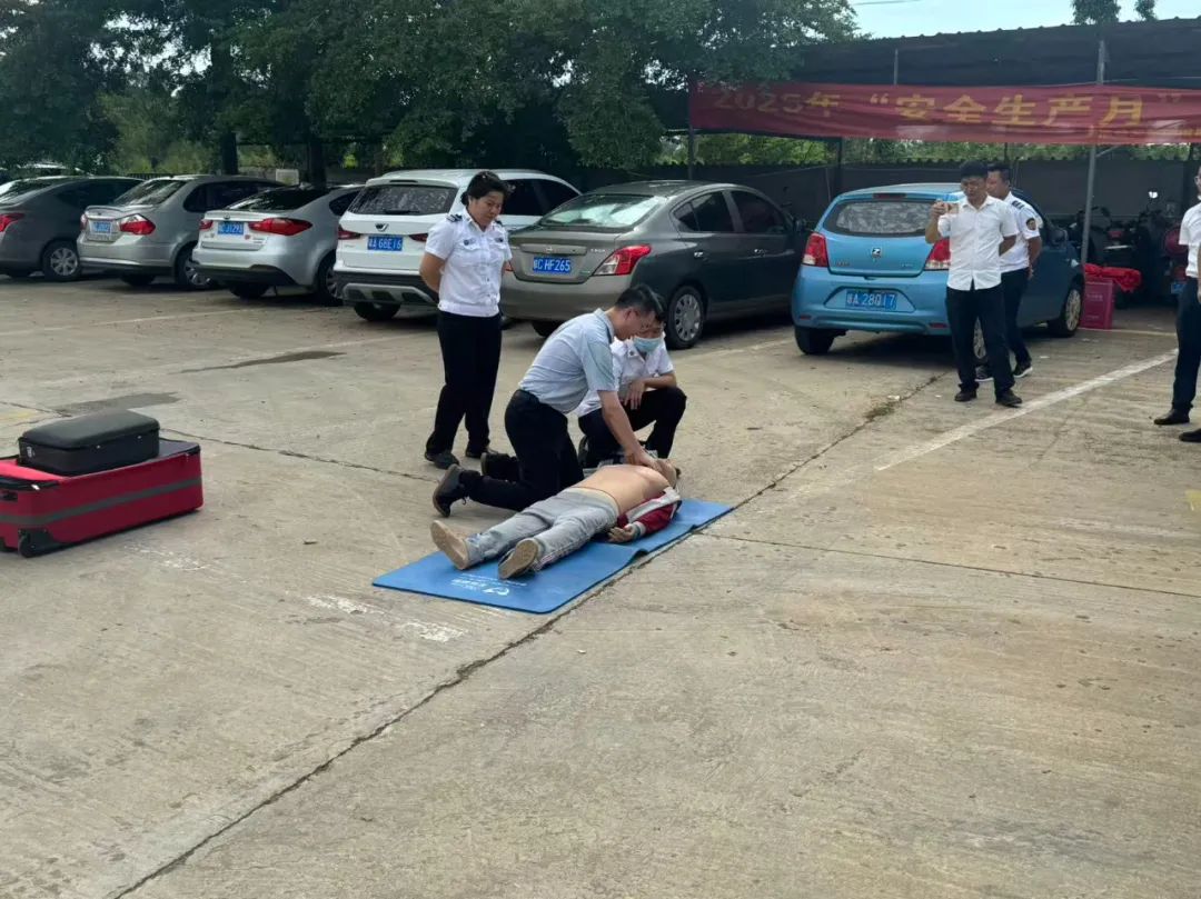 除了清涼物資關懷,“清涼一夏之應急培訓”環節則聚焦職工安全與乘客出行保障。活動特別邀請臨高縣人民醫院醫務科專業人員,為臨高公交一線職工及管理人員開展了一場實用的應急技能培訓。培訓中,醫護人員通過生動的案例分析、細致的技能演示,重點講解并現場指導了心肺復蘇、AED 設備使用、癲癇發作應急處理、心搏驟停與心肌梗死急救、止血包扎等關鍵技能。參訓職工們認真學習、積極互動,紛紛上前實操演練,力求熟練掌握每一個操作細節。